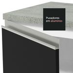 Este móvel possui puxadores em alumínio, amortecedores para fechamento suave das portas e corrediças telescópicas que permitem a abertura total das gavetas. Além disso, tem pés reguláveis em PVC e rodapé removível em MDP.