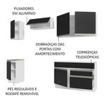 A fabricação é feita com materiais de qualidade, como corrediças telescópicas, puxadores com perfil total em alumínio, dobradiças com amortecimento e pés reguláveis em PVC, com rodapé removível em MDP.