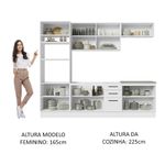 O acabamento da cozinha é branco, feito em Pintura Poliéster com 7 camadas que protegem o móvel dos efeitos do álcool da água e do calor.