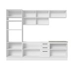 Por se tratar de uma cozinha modulada, você pode organizar as peças conforme a necessidade do seu espaço. Assim, se torna praticamente uma cozinha planejada.