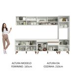 O acabamento da cozinha é branco, feito em Pintura Poliéster ecológica de alta resistência, que dá maior destaque à tonalidade e conserva a beleza do móvel por mais tempo.