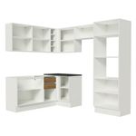 Uma grande vantagem é que é totalmente modulada. Ou seja, você pode fazer a disposição dos módulos conforme a necessidade do seu ambiente. Além disso, o canto pode ser montado do lado direito ou esquerdo.