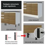 O balcão de pia comporta pias de 120 cm x 52 cm. Para completar, acompanha pés reguláveis em PVC e rodapé removível em MDF com encaixe fácil para retirar na hora da limpeza.