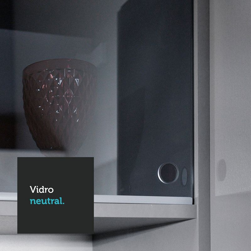 A fabricação é feita com materiais de alta qualidade, projetados para proporcionar qualidade e maior vida útil ao móvel. Possui puxadores em alumínio na coloração titanium, corrediças telescópicas para abertura total das gavetas, portas de correr em vidro neutral e dobradiças metálicas nas portas.