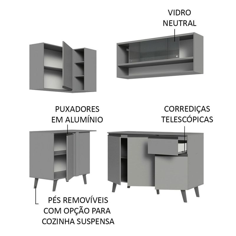 Design moderno, conforto e muita funcionalidade. Confira este Armário de Cozinha Completa de Canto da linha Nice da Madesa, uma ótima opção para renovar a sua casa.