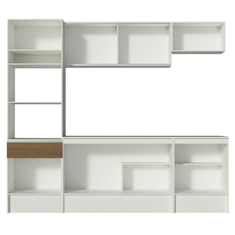 O acabamento da estrutura interna e externa é branco. As portas e a frente da gaveta são no padrão amadeirado Rustic. Todos os acabamentos são em Pintura Poliéster de alta resistência e fácil limpeza que confere beleza e praticidade.