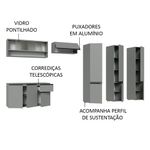 A qualidade dos materiais é elevada: possui puxadores em alumínio na coloração titanium, corrediças telescópicas para abertura total da gaveta e dobradiças metálicas nas portas.