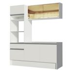 - Uma (1) torre com nichos para forno e micro-ondas, com uma (1) gaveta e duas (2) portas, sendo uma basculante com um (1) balcão agregado de 120 cm com duas (2) portas