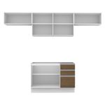 Cozinha Compacta Madesa Marina Com Armário e Balcão (Sem Tampo e Pia) Branco/Rustic/Branco Cor:Branco/Rustic/Branco