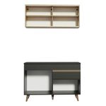 É fabricada com materiais de alto padrão, como dobradiças metálicas, puxadores embutidos em alumínio na coloração marrom e pés em madeira que conferem mais beleza e resistência ao móvel. Além disso, o tampo do balcão pode ser removido para colocação de pia no espaço de 120 x 52 cm.