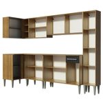 Medidas totais: 186 cm de altura x 325 cm de largura x 44 cm profundidade nos balcões e 27 cm nos aéreos e no paneleiro.