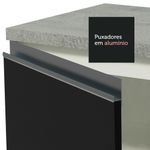 O acabamento da estrutura é branco e as portas e frentes são pretas. É feito em Pintura Poliéster com 7 camadas que protegem o móvel dos efeitos do álcool da água e do calor.