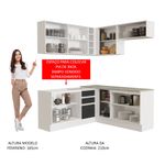 Para completar, a cozinha conta com pés reguláveis em PVC e rodapé removível em MDP de fácil encaixe, para retirar na hora de realizar a limpeza.