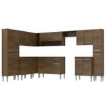 O acabamento interno e externo é no padrão amadeirado Rustic, em Pintura Poliéster com 7 camadas de proteção que oferece resistência contra os efeitos da água e do calor. Ela é dividida em dez módulos independentes: paneleiro duplo, balcão com 2 portas, armário aéreo com 2 portas, balcão de canto reto, armário aéreo de canto reto com duas portas e adega, balcão de pia, armário aéreo com duas portas e dois nichos, balcão com 2 portas, armário aéreo com 2 portas e o paneleiro simples.