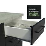 Os materiais utilizados na fabricação são de alta qualidade, como gavetas com corrediças telescópicas e portas com amortecedor para fechamento suave. Já os puxadores possuem alças metálicas, mais resistentes ao uso diário.