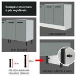 Para completar, os pés são reguláveis em PVC com rodapé removível em MDP de encaixe fácil, para facilitar na hora da limpeza.
