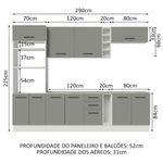- 52 cm de profundidade nos módulos inferiores e 31 cm nos aéreos
