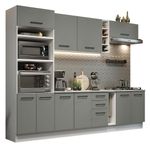 O acabamento da estrutura é branco e o das portas e frentes é cinza. É feito em Pintura Poliéster ecológica, com 7 camadas de proteção resistentes a álcool, água e calor.