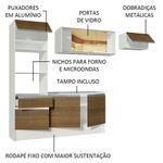 - Uma (1) torre com nichos para forno e micro-ondas, com uma (1) gaveta e duas (2) portas, sendo uma basculante com um (1) balcão agregado de 120 cm com duas (2) portas