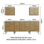 Medidas totais: 186 cm de altura x 233 cm de largura x 44 cm profundidade nos balcões e 27 cm nos aéreos.