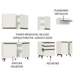 O acabamento da cozinha é branco, feito em Pintura Poliéster ecológica de alta resistência, que dá maior destaque à tonalidade e conserva a beleza do móvel por mais tempo.