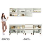 A fabricação é feita com materiais de alto padrão, como corrediças e dobradiças metálicas. Os puxadores são embutidos, em alumínio na coloração marrom. Os pés em madeira são um charme à parte, que além de beleza, conferem firmeza e resistência ao móvel.