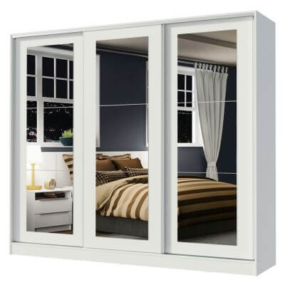 Guarda-Roupa Casal 100% MDF Madesa Eros 3 Portas de Correr de Espelho Branco Cor:Branco