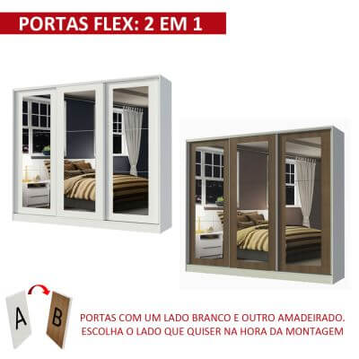 - Três (3) portas de correr com espelhos, apresentando sistema anti-descarrilhamento e puxadores em alumínio em toda a extensão das portas