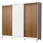 O acabamento interno e externo é branco. A porta central é branca e as demais são no padrão amadeirado Rustic. O processo é feito em Pintura Poliéster de alta resistência que confere maior proteção e durabilidade ao móvel.