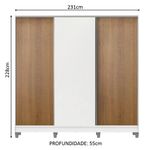 Medidas totais do armário: 218 cm de altura x 231 cm de largura x 55 cm de profundidade.