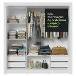 Características principais: Conta com portas de correr que deslizam suavemente, graças aos trilhos superiores e inferiores em alumínio. Isso garante um funcionamento tranquilo e sem esforço. Uma das portas conta com espelhos, que são úteis no dia a dia e deixam o móvel ainda mais elegante.