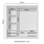 Medidas totais: 205 cm de altura x 170 cm de largura x 51 cm de profundidade.
