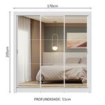 Características principais: Equipado com portas de correr que deslizam suavemente, graças aos trilhos superiores e inferiores em alumínio. Isso garante um funcionamento tranquilo e sem esforço. Todas as portas contam com espelhos, que são úteis no dia a dia e deixam o móvel ainda mais elegante.