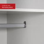 Internamente, são dois cabideiros de alumínio que oferecem espaço para roupas curtas e mais longas, além de diversas prateleiras, nichos e três gavetas espaçosas com corrediças metálicas. Dessa forma, cabe tudo que um casal precisa: calçados, malas, travesseiros, edredons e muito mais.