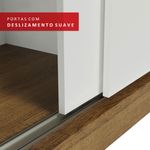 O móvel conta com quatro portas de correr com deslizamento suave, trilhos em alumínio para maior resistência e quatro puxadores externos. Além disso, o sistema anti-descarrilhamento evita com que as portas saiam do trilho e transmitem mais segurança no uso diário. Os espelhos, presentes em duas das portas, são bonitos, muito práticos e úteis.
