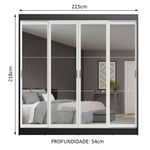 Medidas totais do guarda-roupa: 218 cm de altura x 215 cm de largura x 54 cm de profundidade.