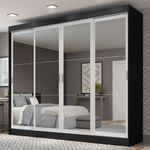 - Quatro (4) portas de correr com sistema anti-descarrilhamento, todas com espelhos