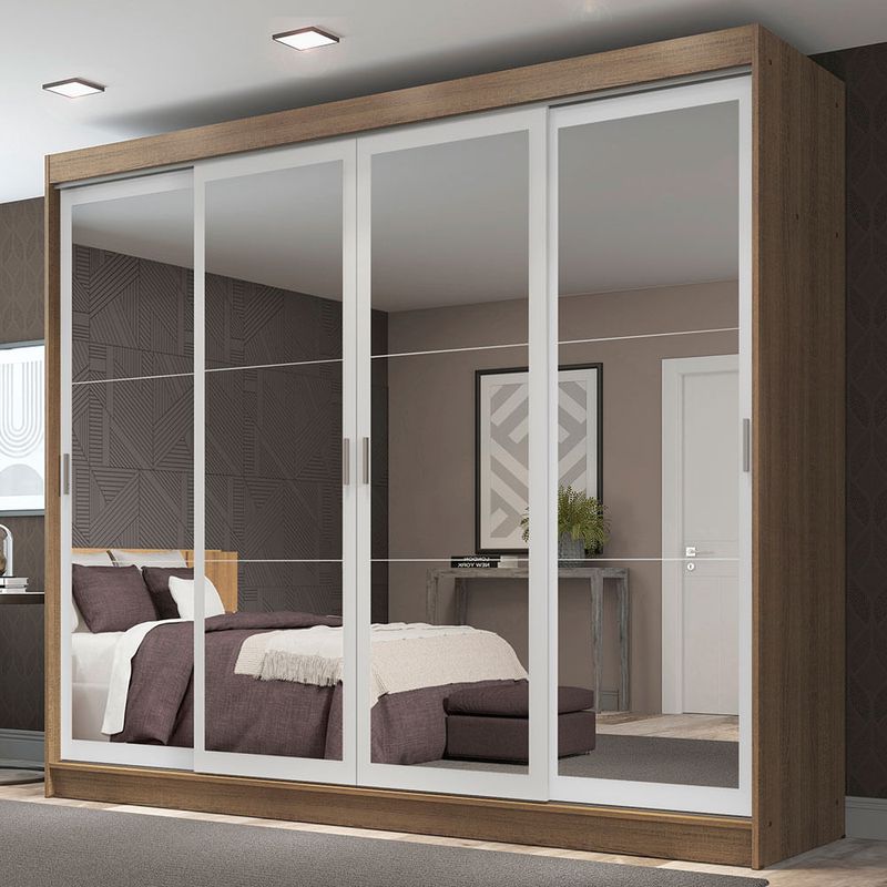 Um grande destaque deste modelo são os espelhos, presentes em todas as portas. Esse detalhe traz mais profundidade e deixa o seu ambiente muito mais elegante. Sem falar na praticidade para o dia-a-dia.