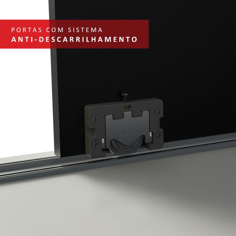 O acabamento da estrutura é branco e as portas são pretas. É feito com a Pintura Poliéster exclusiva da Madesa. Esse processo é ecologicamente correto e conserva o móvel por muito mais tempo.