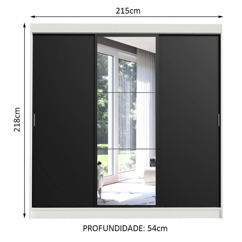 Medidas totais do móvel: 218 cm de altura x 215 cm de largura x 54 cm de profundidade.