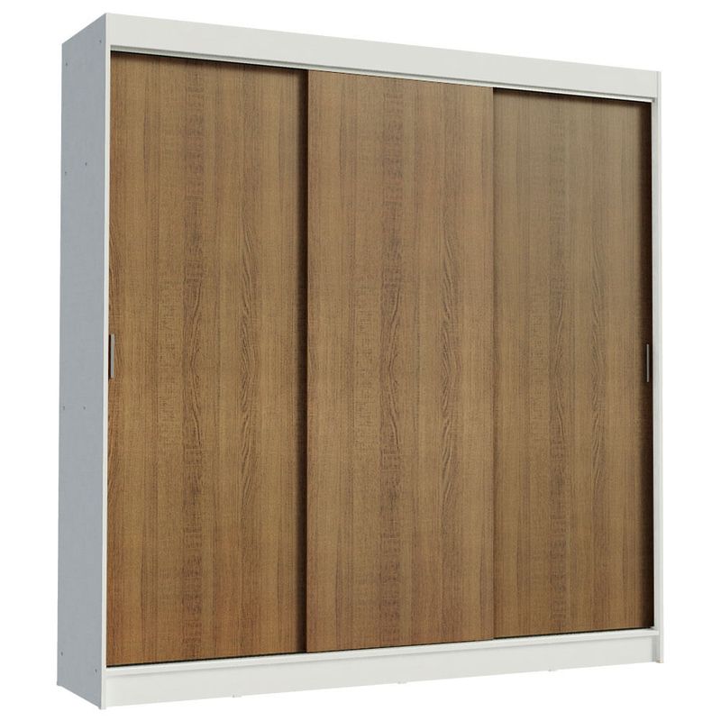 O Guarda-Roupa Kansas da Madesa possui três portas de correr com deslizamento suave, trilhos em alumínio para maior resistência e dois puxadores externos.