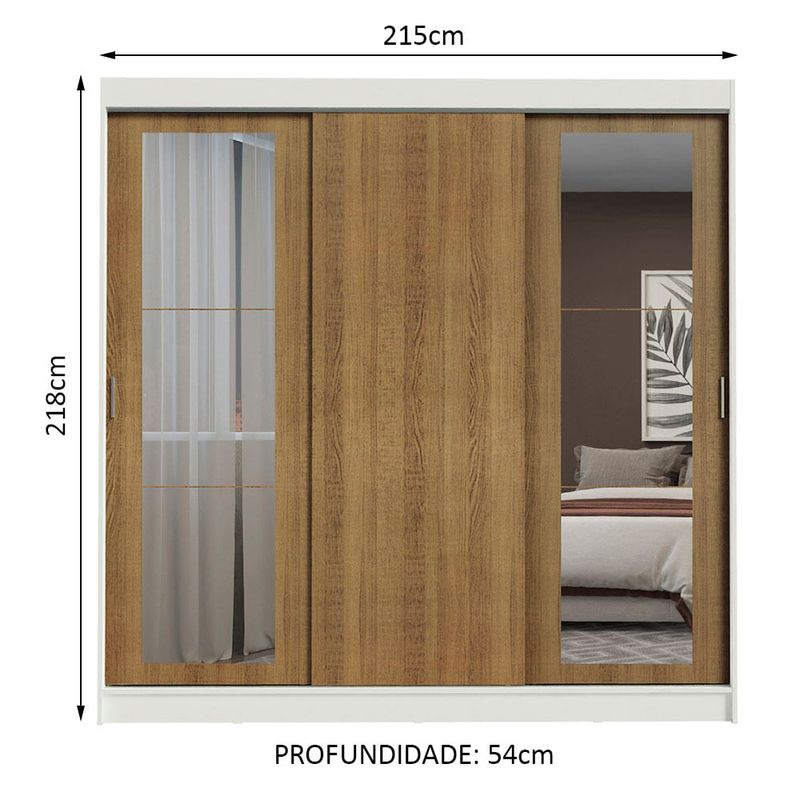 Medidas totais do móvel: 218 cm de altura x 215 cm de largura x 54 cm de profundidade.
