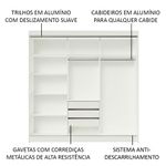 O Guarda-Roupa Kansas da Madesa possui três portas de correr com deslizamento suave, trilhos em alumínio para maior resistência e dois puxadores externos. Duas das portas contam com o diferencial dos espelhos, que são bastante práticos.