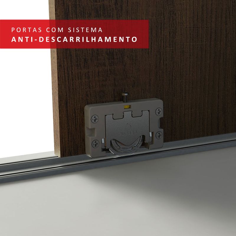 - Três (3) portas de correr com sistema anti-descarrilhamento, sendo duas delas com espelhos