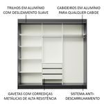 O tamanho é pensado especialmente para a necessidade de um casal. A divisão interna é ótima, com muitas prateleiras e nichos, além de três gavetas espaçosas com corrediças metálicas, muito mais seguras e resistentes.