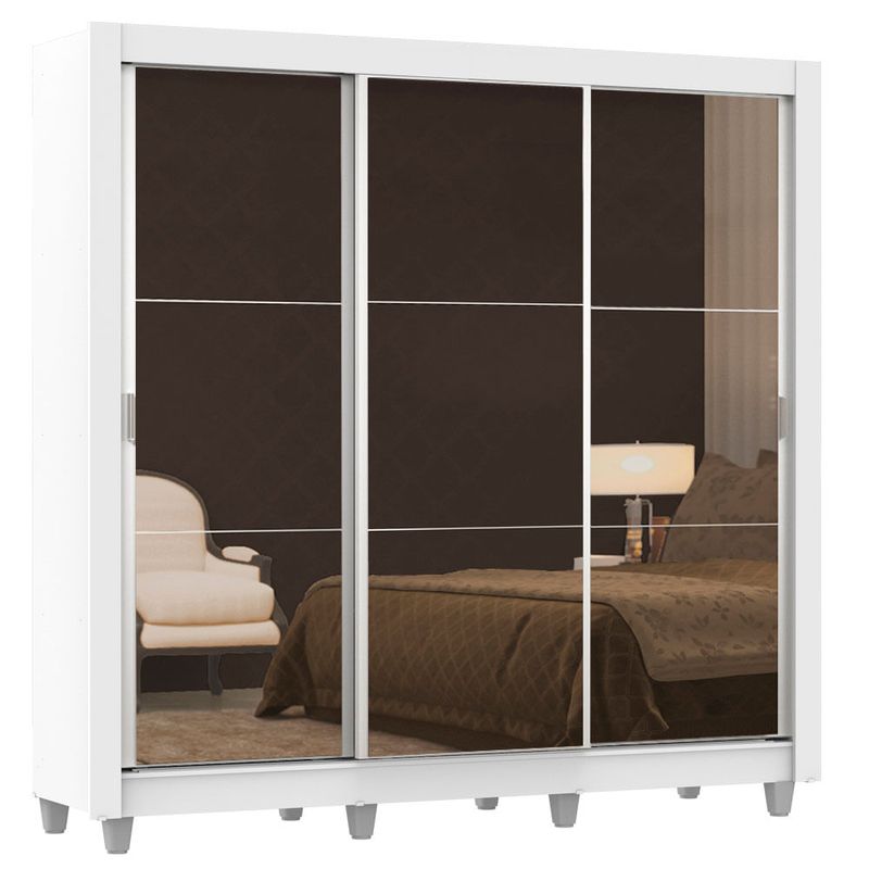 O Guarda-Roupa de Casal com melhor custo benefício do mercado. Ferragens de qualidade, três portas de espelho, cabideiro metálico e pintura em Poliéster Protetor que confere durabilidade e resistência. As portas de correr possuem trilho superior e inferior em alumínio e sistema de deslizamento suave garantindo melhor funcionamento.