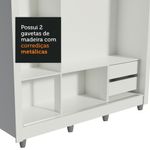 Total aproveitamento interno levando em conta o uso de duas pessoas. São duas gavetas internas com corrediça metálica, muitos nichos que facilitam a organização de roupas, calçados e acessórios. O tubo cabideiro é muito resistente e possui espaço para roupas longas.