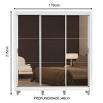 Medidas totais do armário: 215 cm de altura x 170 cm de largura x 46 cm de profundidade.