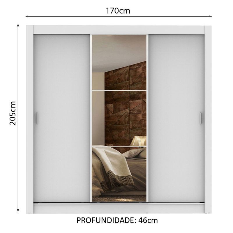 Medidas totais do armário: 205 cm de altura x 170 cm de largura x 46 cm de profundidade.