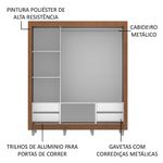 Total aproveitamento interno levando em conta o uso de duas pessoas. Nesta versão com quatro gavetas internas na cor branca com corrediça metálica, diversos nichos que facilitam a organização de roupas, calçados e acessórios. O tubo cabideiro é muito resistente e possui espaço para roupas longas.